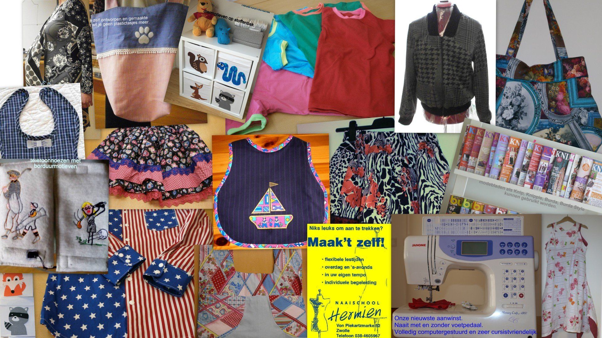 Kom dan naar naaischool Hermien. Bij naaischool Hermien kun je jouw eigen kleding en accessoires (tassen, hoedjes, telefoonhoesje) leren maken.